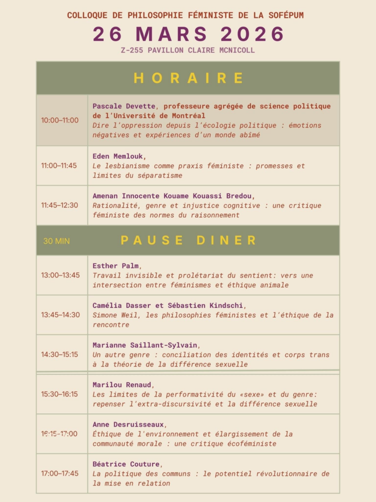 La SOFÉPUM est heureuse de vous annoncer que son colloque aura lieu le 26 mars au pavillon Claire-McNicoll, salle Z-255.
